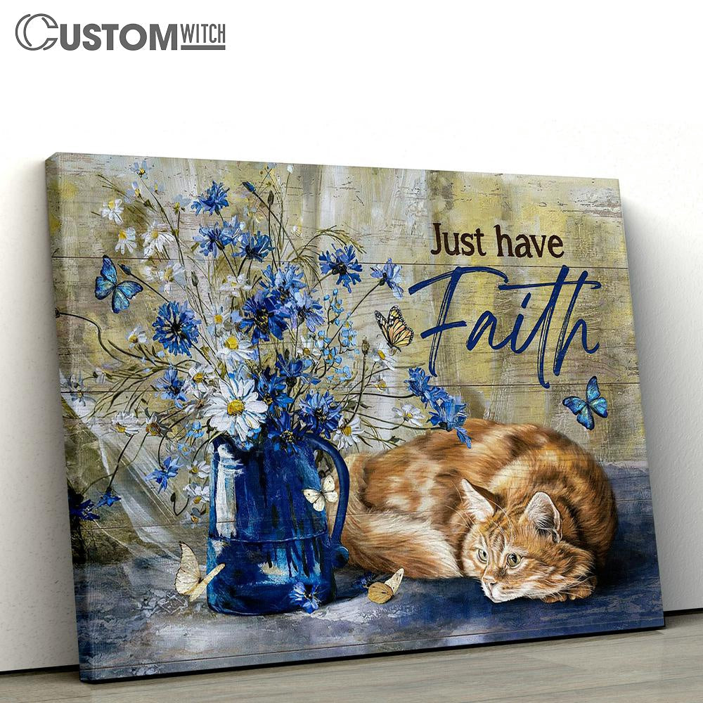 Just Have Faith Daisy Tabby Cat Wall Art Canvas - Christian Wall Art - Religious Art
