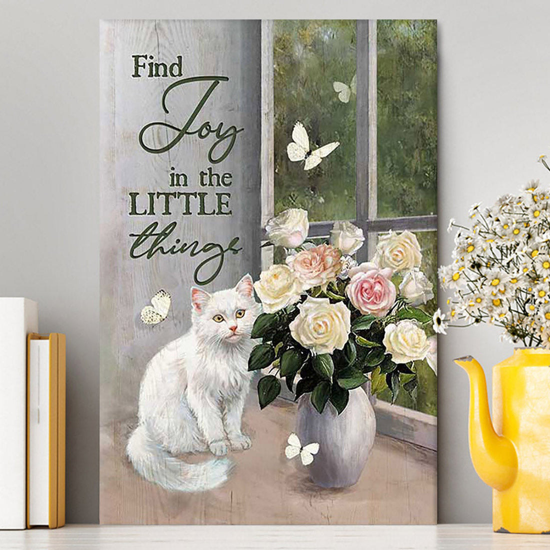 Find Joy In The Little Things White Cat Rose Butterfly Canvas Art - Bible Verse Wall Art - Christian Inspirational Wall Decor