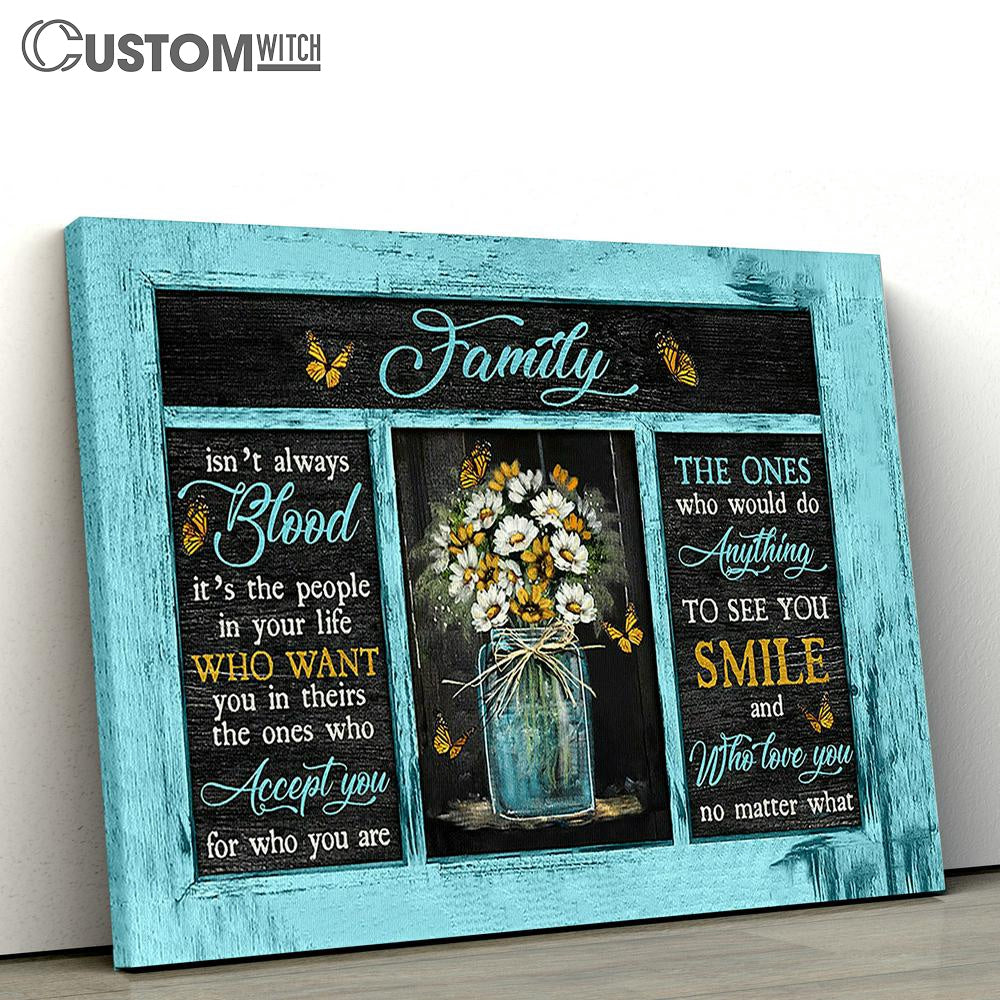 Family Isn't Always Blood Flower Yellow Butterfly Large Canvas - Christian Wall Art - Bible Verse Canvas Art