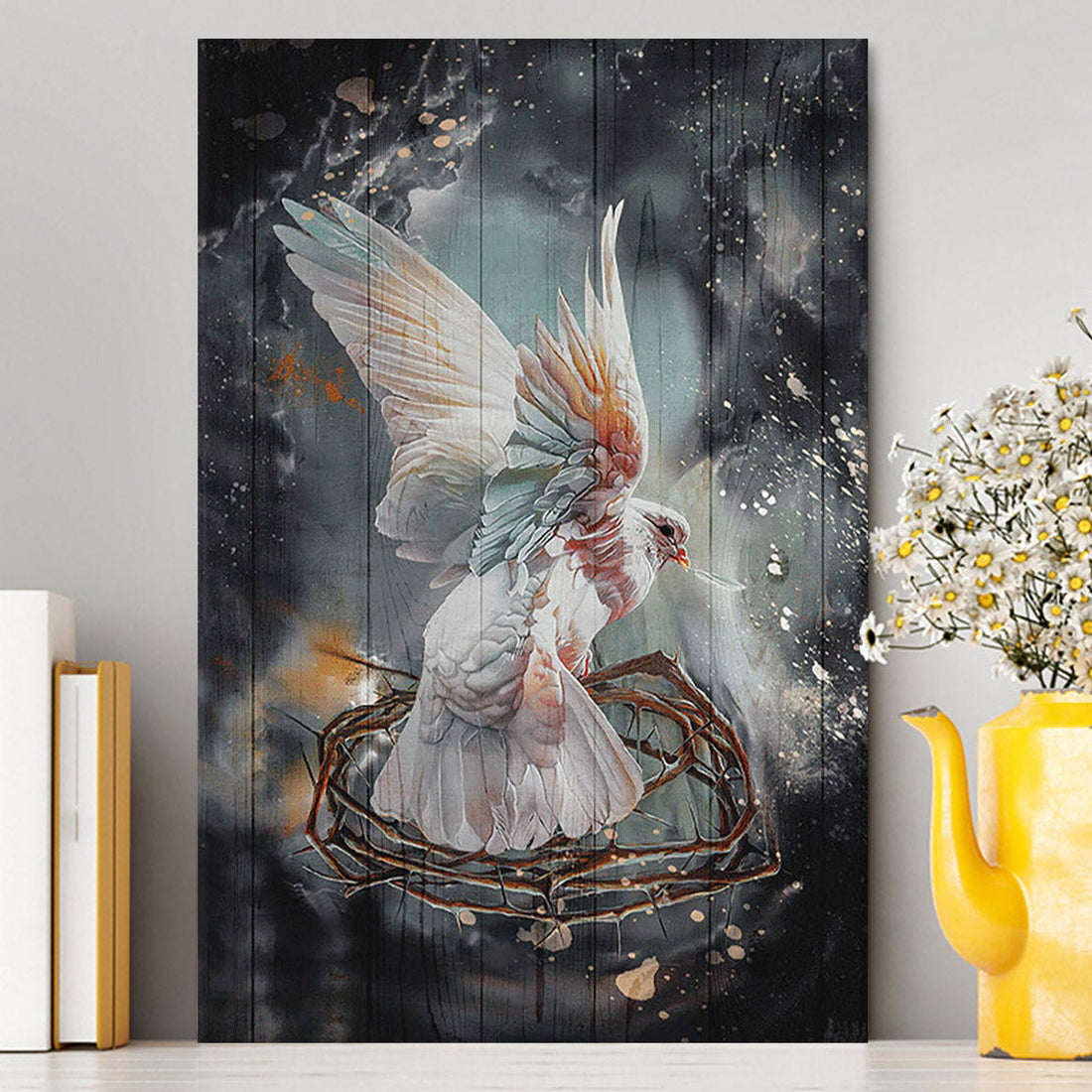 Flying Dove Crown Of Thorn Storm Background Canvas Art - Bible Verse Wall Art - Christian Inspirational Wall Decor