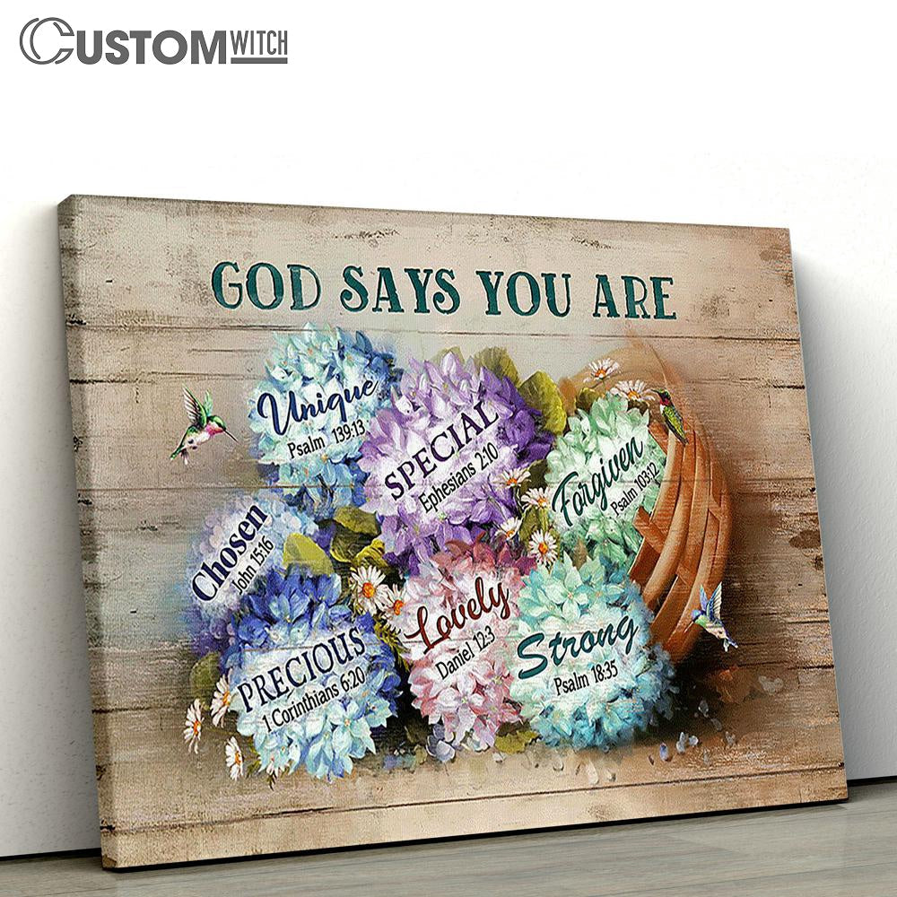 Hydrangeas God Says You Are Unique Large Canvas Art - Christian Wall Decor - Religious Wall Decor