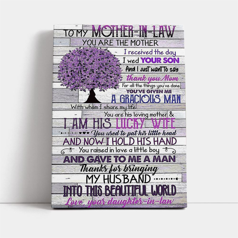 To My Mother In Law You Are The Mother I Received The Day Vertical Paper Canvas, Mother's Day Canvas Art, Gift For Mom, Mother's Day Wall Art