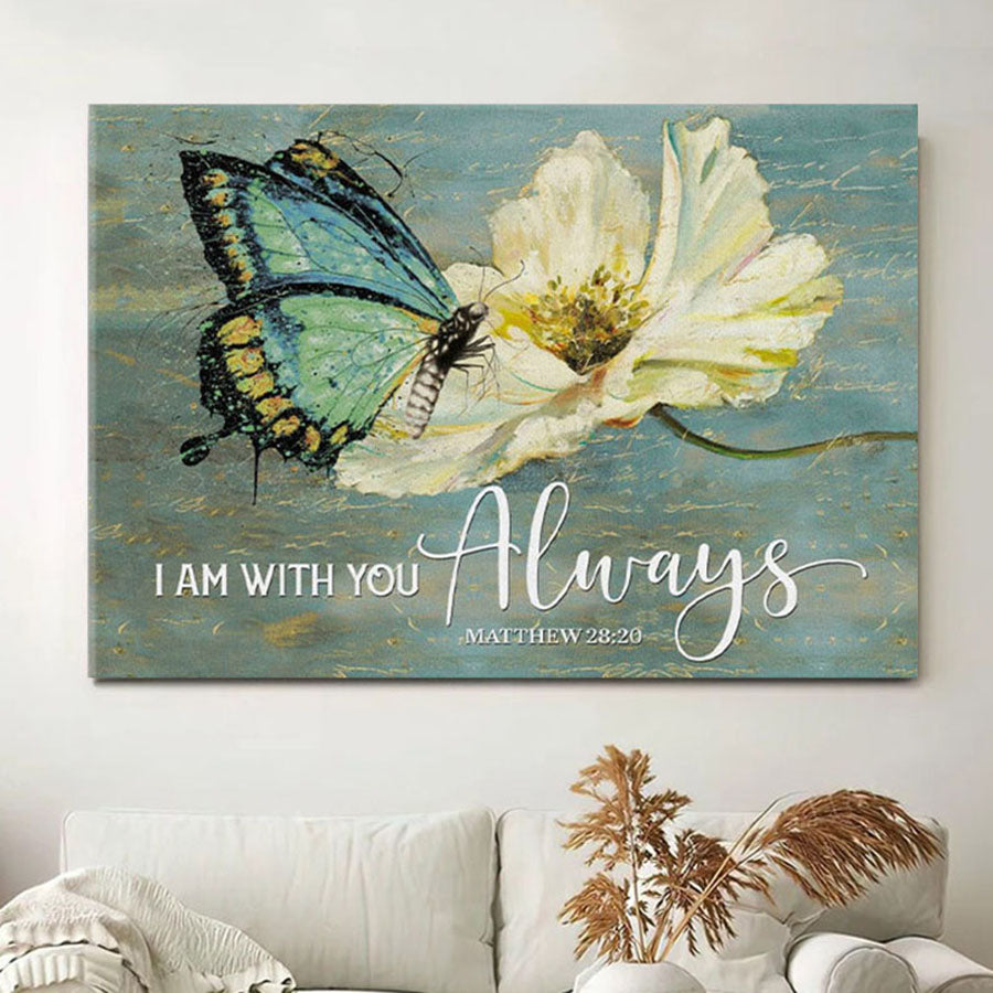 Butterfly Flower Matthew 2820 I Am With You Always Canvas Wall Art Print - Christian Wall Decor