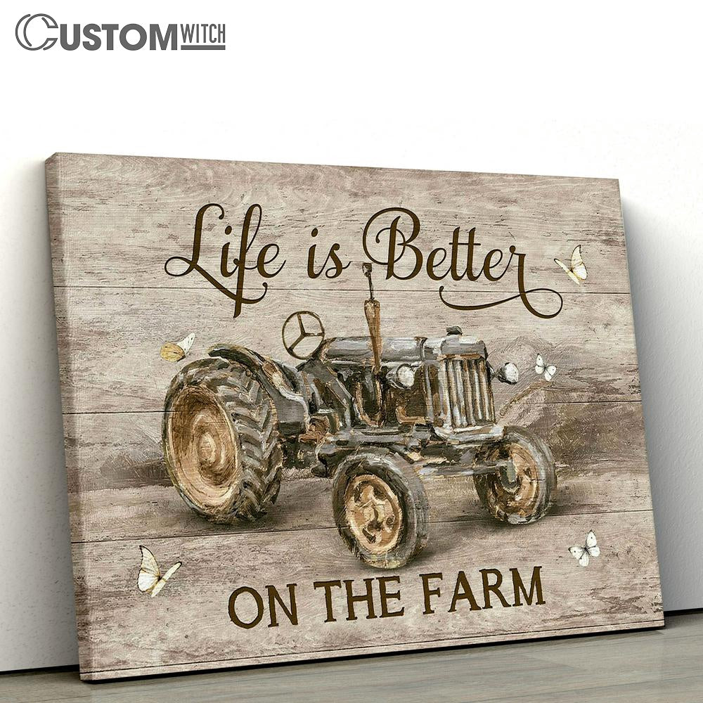 Life Is Better On The Farm Tractor White Butterfly Canvas Art - Bible Verse Wall Art - Wall Decor Christian