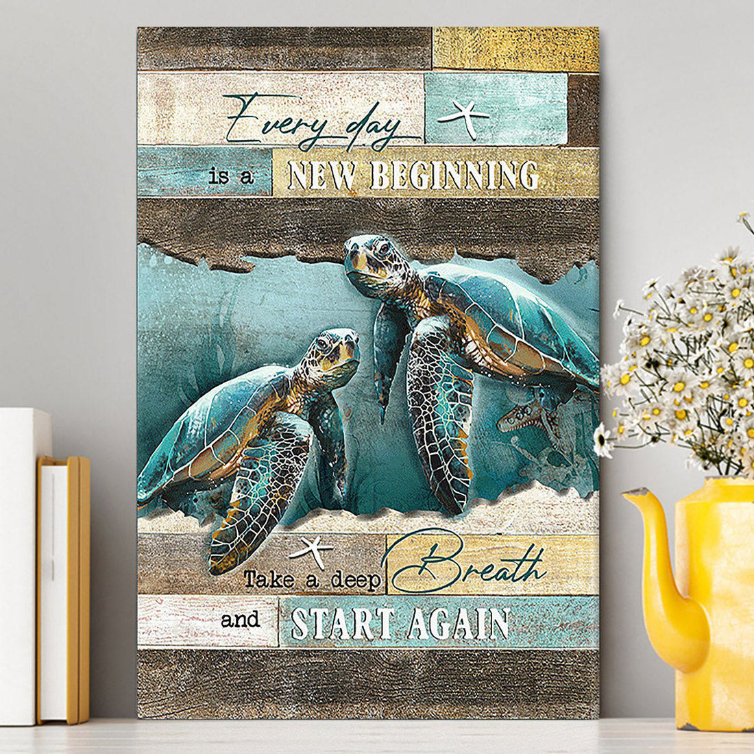 Every Day Is A New Beginning Sea Turtle Deep Ocean White Starfish Canvas Wall Art - Christian Canvas Prints