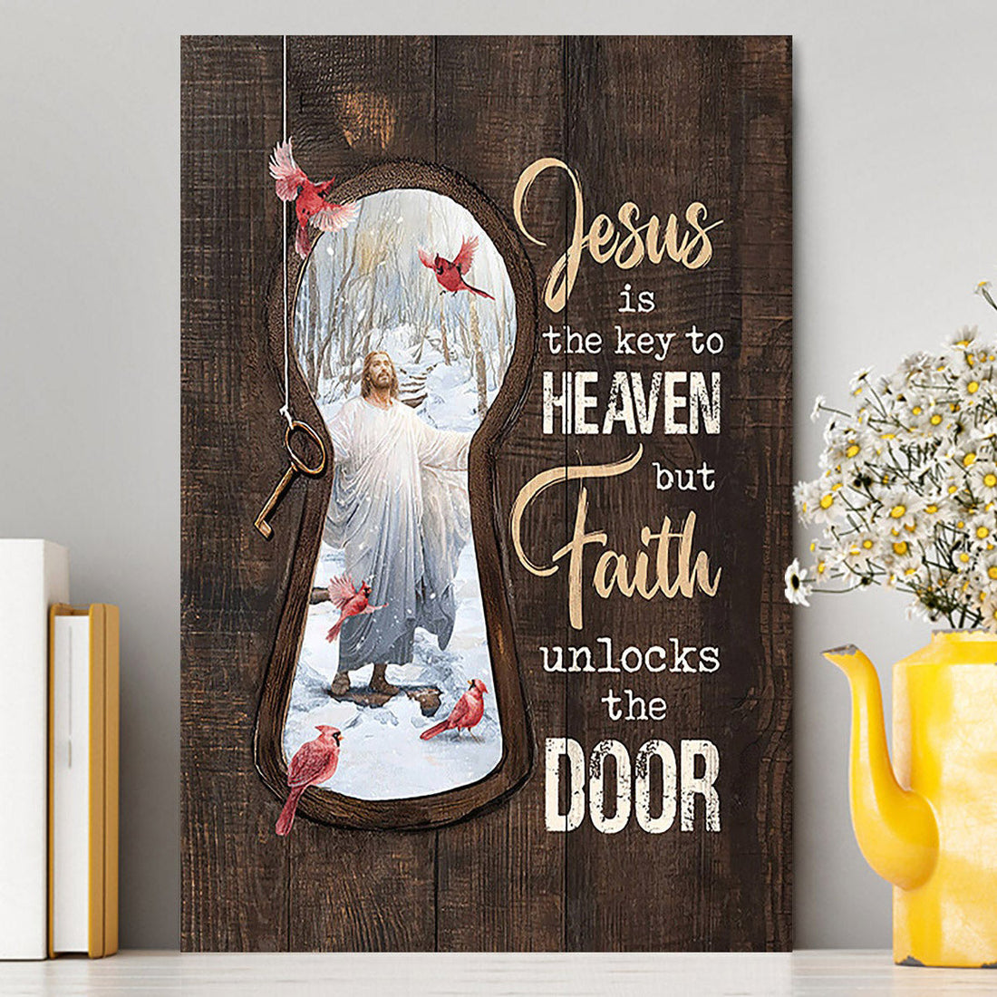 Jesus Is The Key To Heaven Canvas - Jesus Christ Northern Cardinal Canvas - Christian Wall Art - Religious Home Decor
