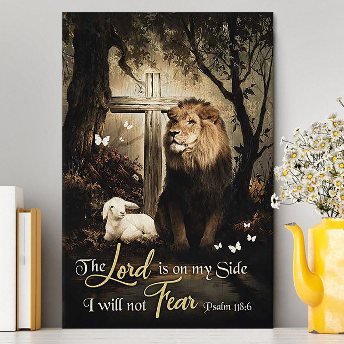 The Lord Is On My Side Canvas - Lion Lamb Of God Wooden Cross Canvas Print - Inspirational Canvas Art - Christian Wall Art Home Decor