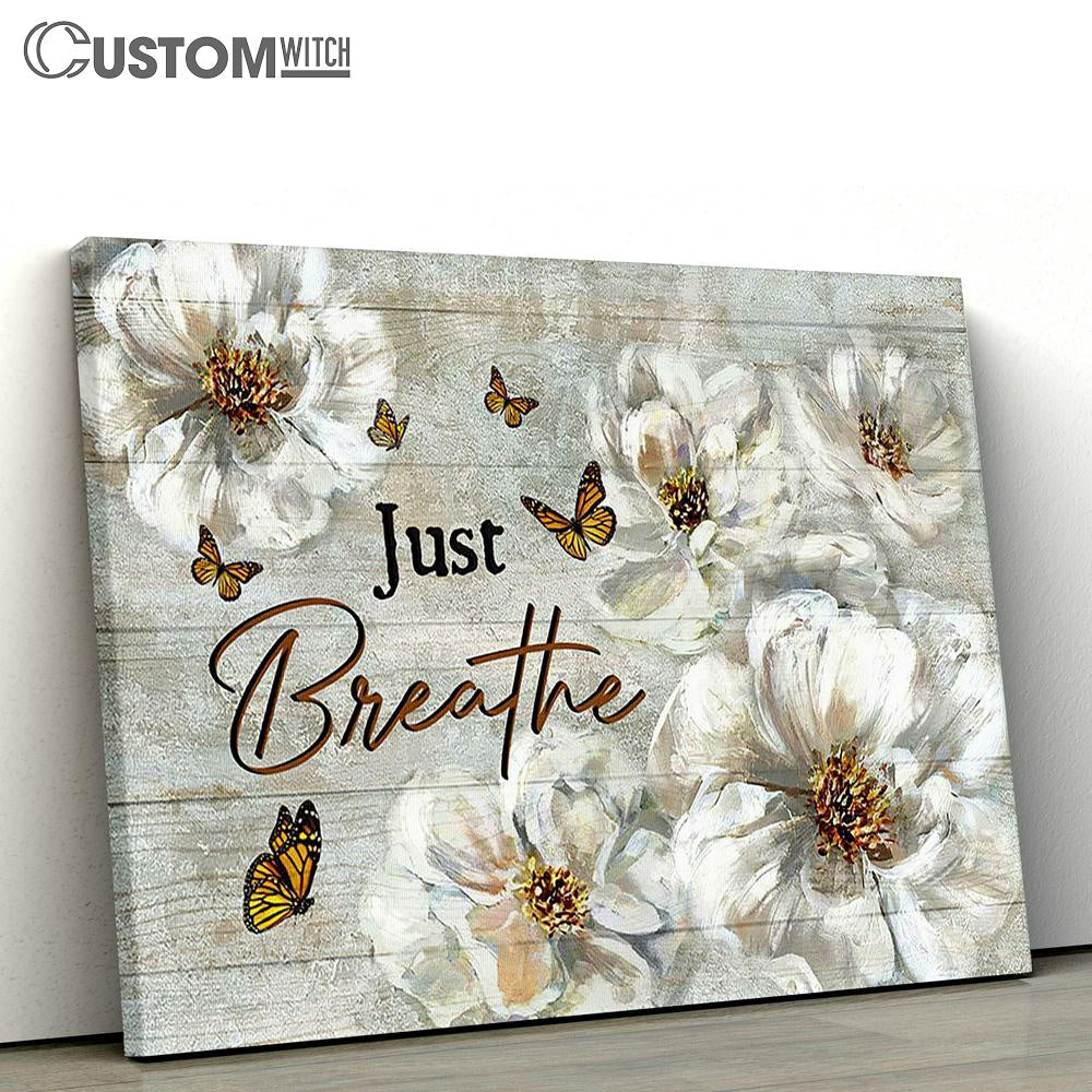 Just Breathe White Flower Yellow Butterfly Canvas Art - Bible Verse Wall Art - Wall Decor Christian