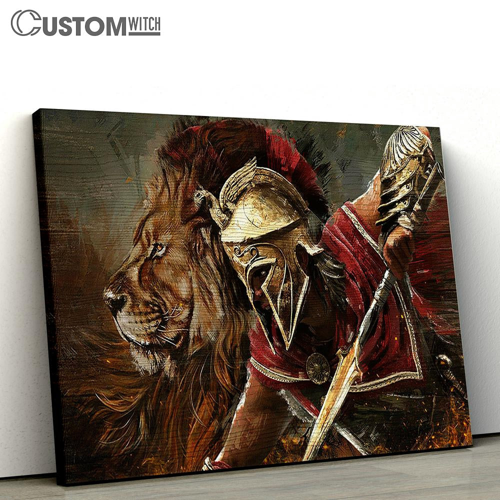Lion Of Judah Helmet Of Salvation Great A Brave Warrior Of God Canvas Art - Christian Wall Art Decor - Bible Verse Canvas