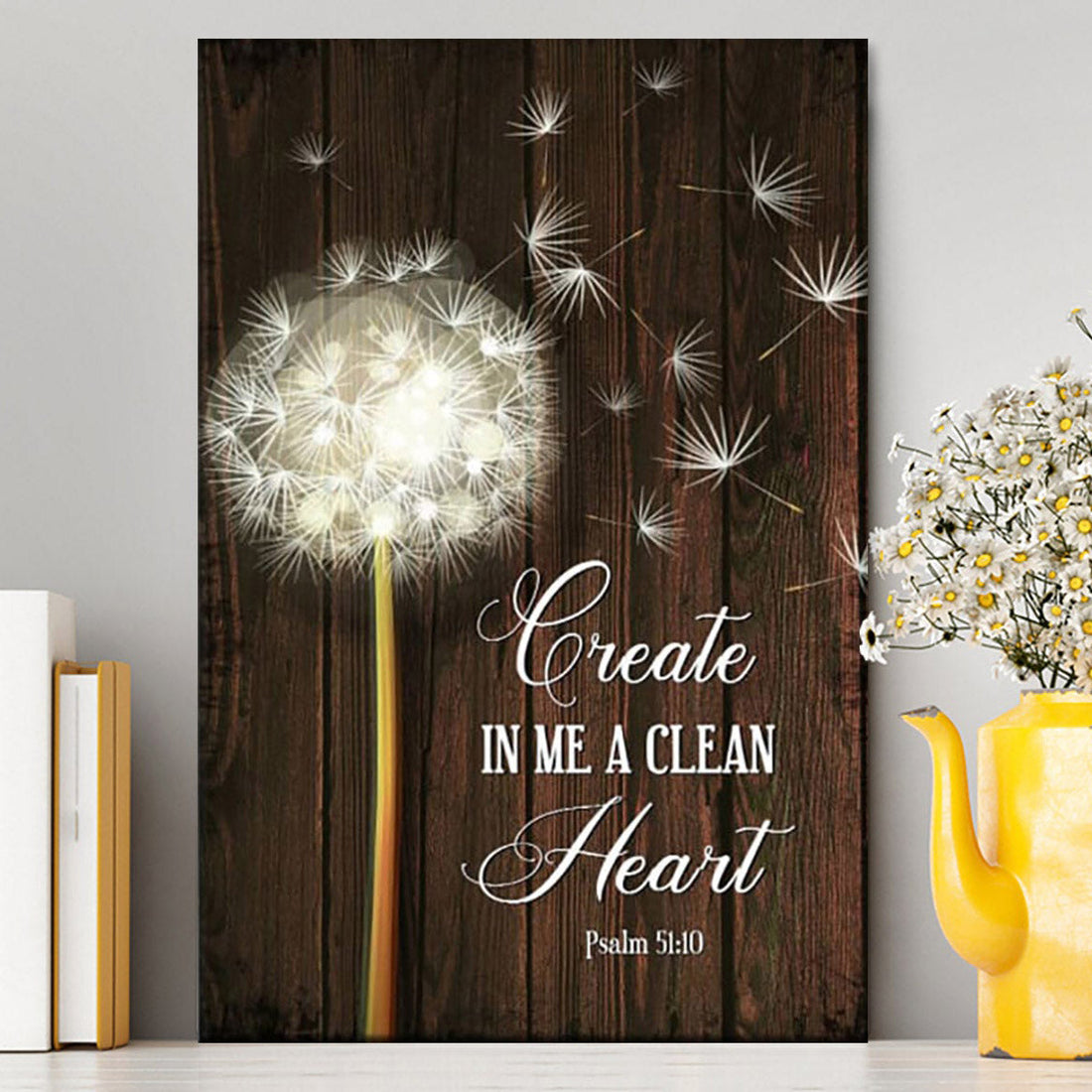 Create In Me A Clean Heart Dandelion Canvas Wall Art - Christian Canvas Prints - Religious Wall Decor