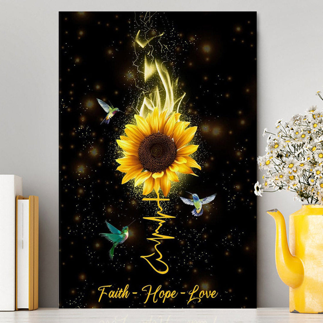 Faith Hope Love Hummingbird Sunflower Canvas Wall Art - Christian Canvas Prints - Religious Wall Decor