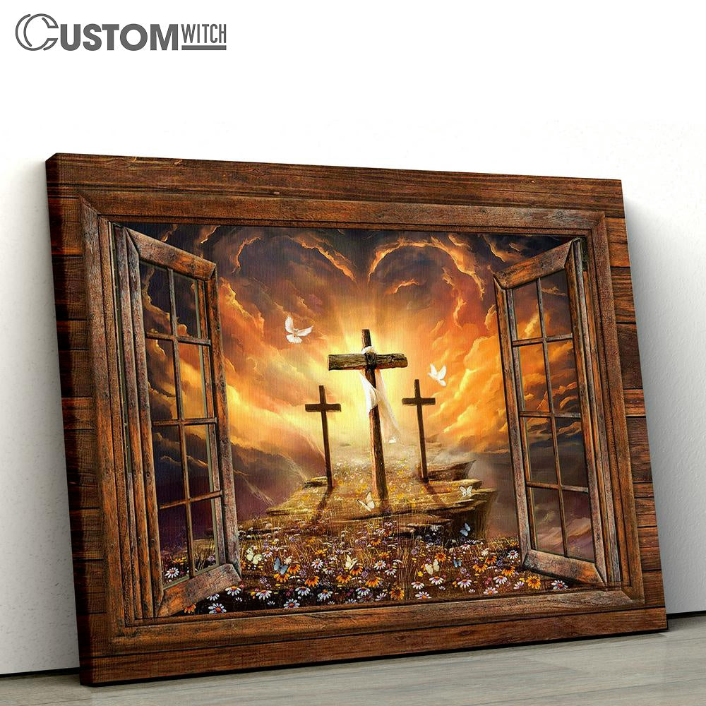 The Three Crosses Path To Heaven Sunset Canvas Art - Bible Verse Wall Art - Wall Decor Christian