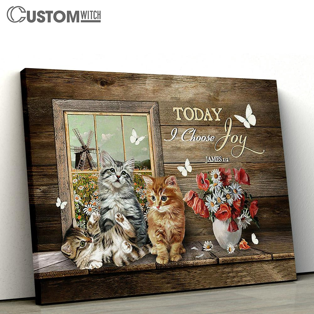 Cat Red Poppy Today I Choose Joy Canvas Wall Art - Bible Verse Canvas - Religious Prints