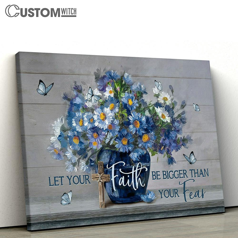 Let Your Faith Be Bigger Than Your Fear Blue Flower Butterfly Canvas Wall Art - Bible Verse Canvas - Religious Prints
