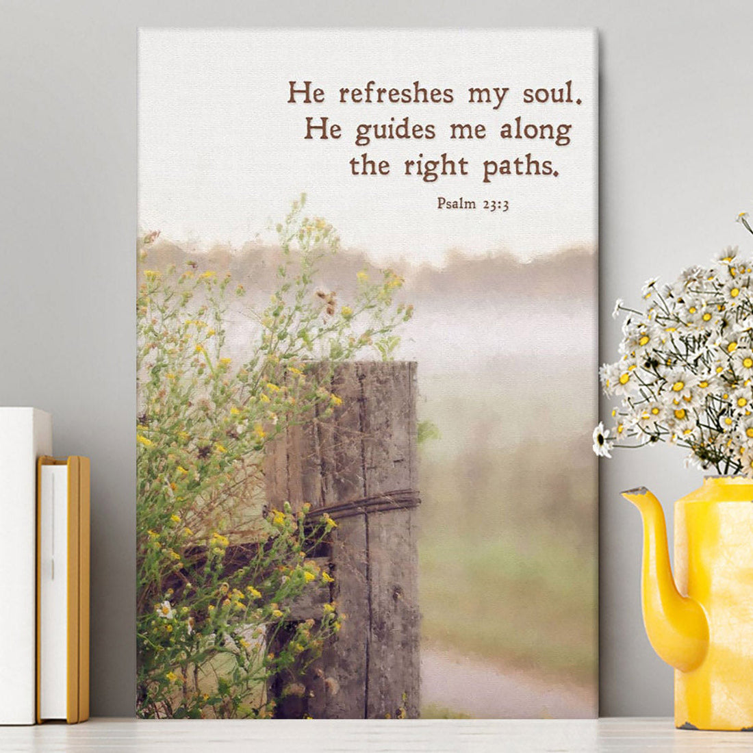 He Refreshes My Soul - He Guides Me Along The Right Paths Canvas Wall Art - Inspirational Canvas Art - Christian Wall Decor