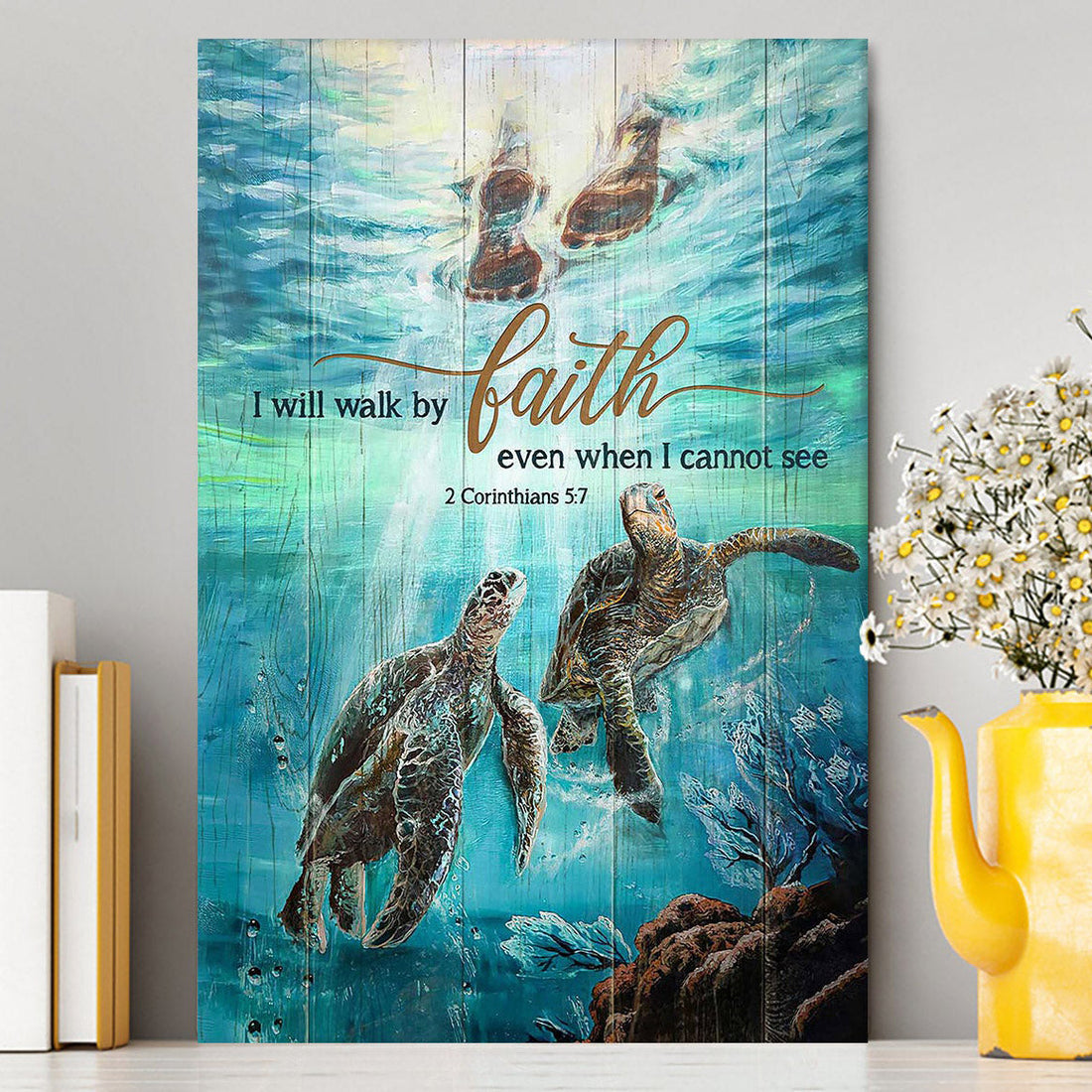 I Will Walk By Faith Even When I Cannot See Turtle Canvas Art - Christian Art - Bible Verse Wall Art - Religious Home Decor