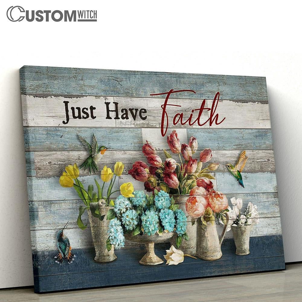 Just Have Faith Hummingbird Types Of Flowers Canvas Art - Christian Wall Art Decor - Bible Verse Canvas