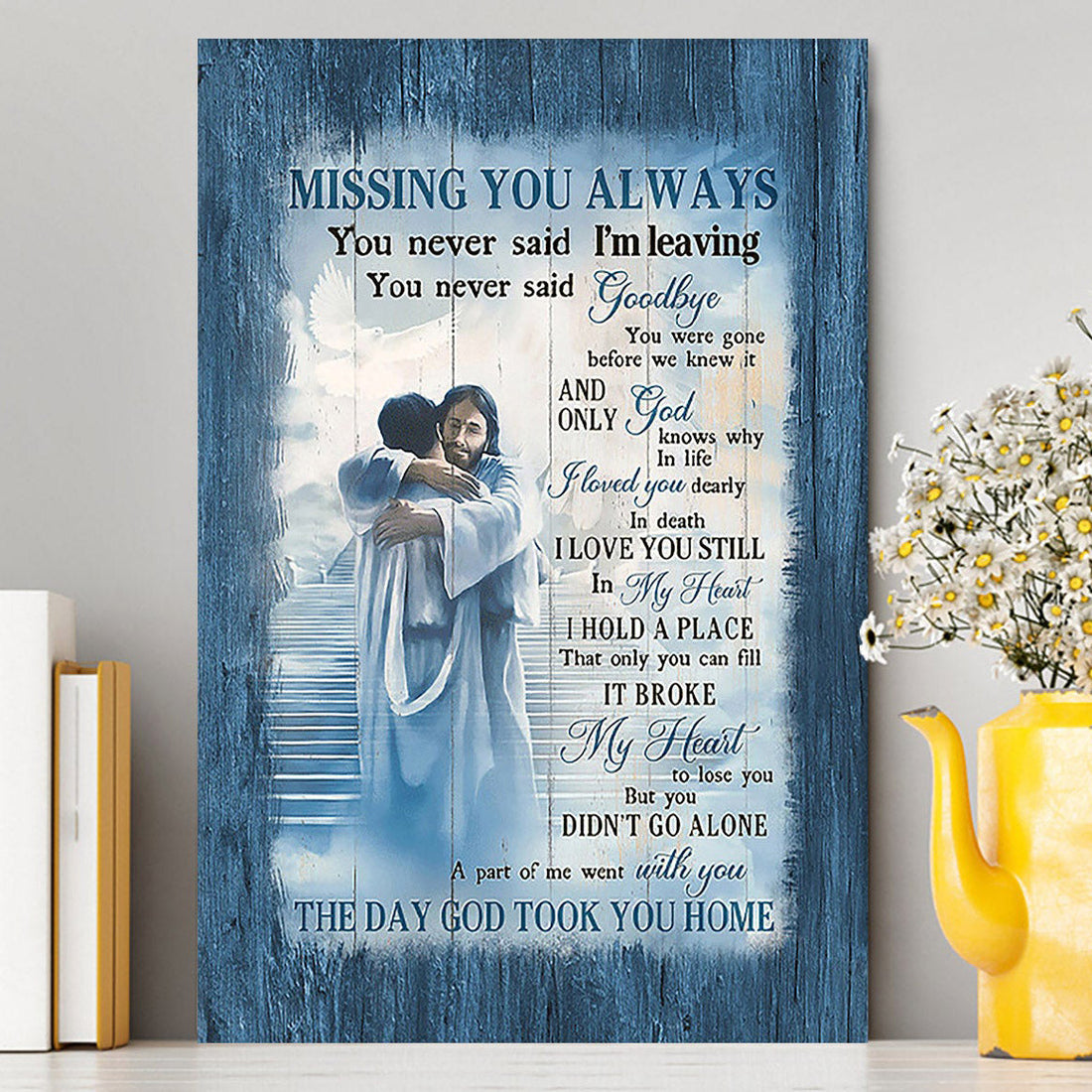 Missing You Always Canvas - Jesus Christ Hugging Man In Heaven Canvas - Christian Wall Art - Religious Home Decor