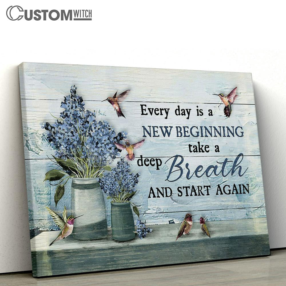Every Day Is A New Beginning Blue Flower Hummingbird Canvas Prints - Religious Canvas Art - Christian Home Decor