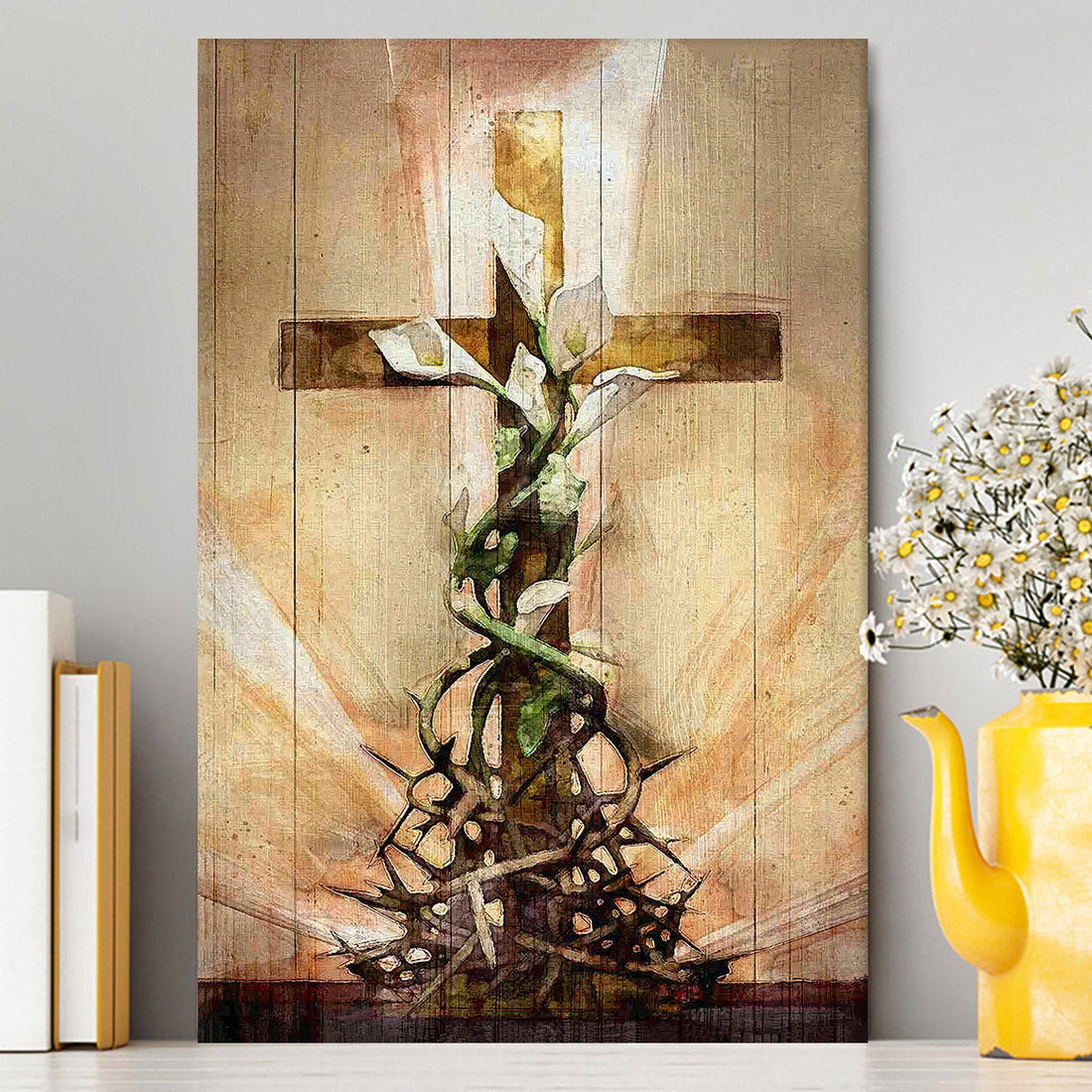 Cross And Lily Canvas Wall Art - Christian Wall Canvas - Religious Canvas Prints