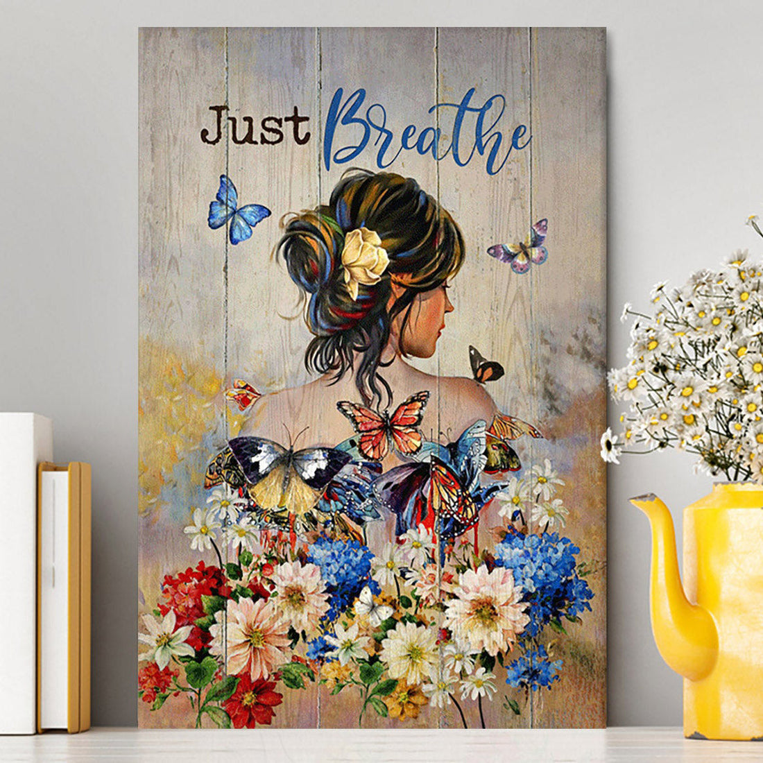 Butterfly Flowers Garden Just Breathe Canvas Wall Art - Christian Canvas Prints - Bible Verse Canvas Art