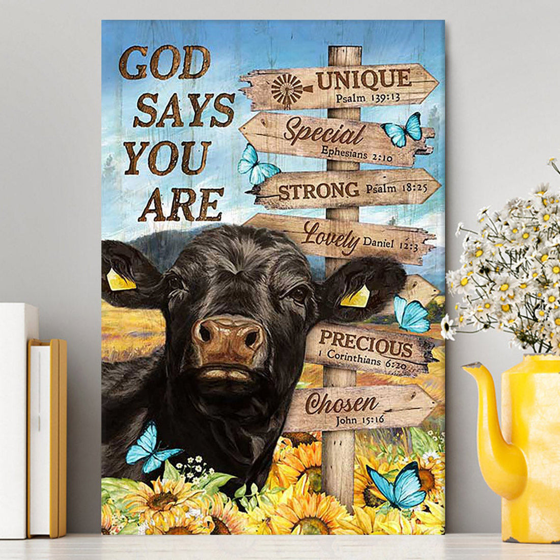 God Says You Are Black Cow Sunflower Field Canvas Wall Art - Bible Verse Canvas Art - Inspirational Art - Christian Home Decor
