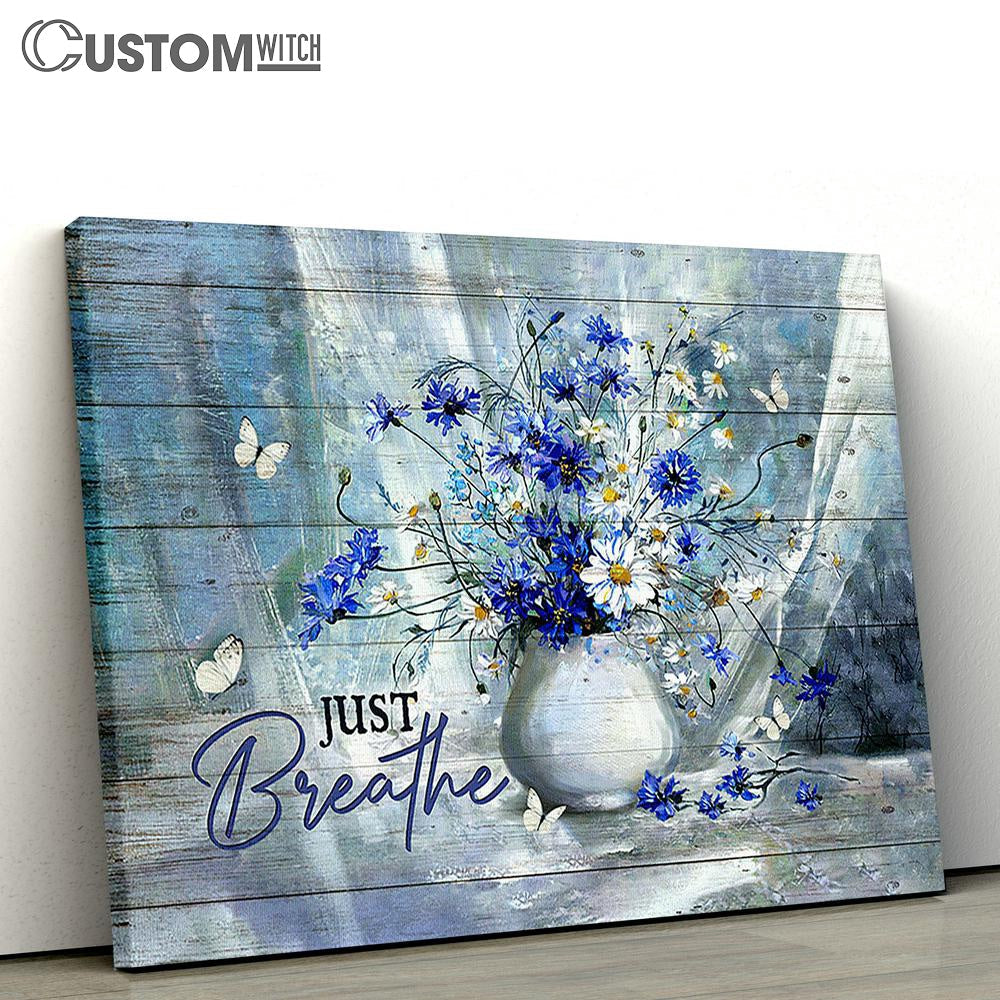 Just Breathe Flower Daisy Vase Canvas Art - Bible Verse Wall Art - Wall Decor Christian