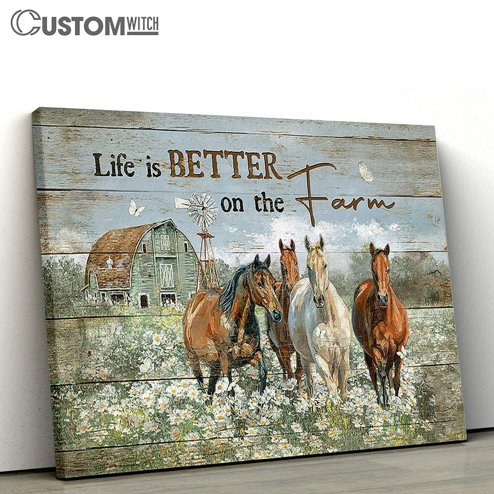 Life Is Better On The Farm Running Horse Daisy Field Wall Art Canvas - Christian Wall Decor - Gifts For Horse Lovers