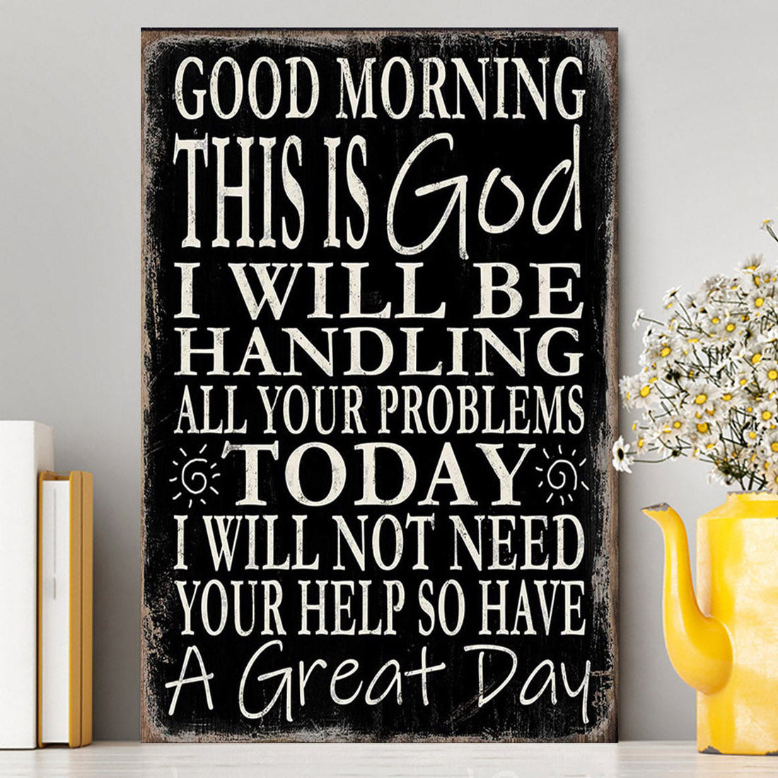 Good Morning This Is God I Will Be Handling All Your Problems Today Canvas Wall Decor