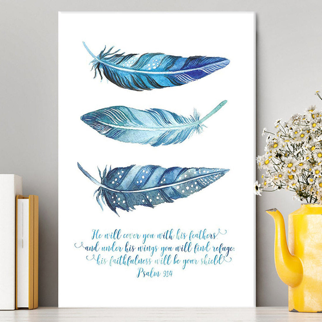 He Will Cover You With His Feathers Canvas Wall Art - Psalm 91 4 - Christian Canvas Wall Art Decor