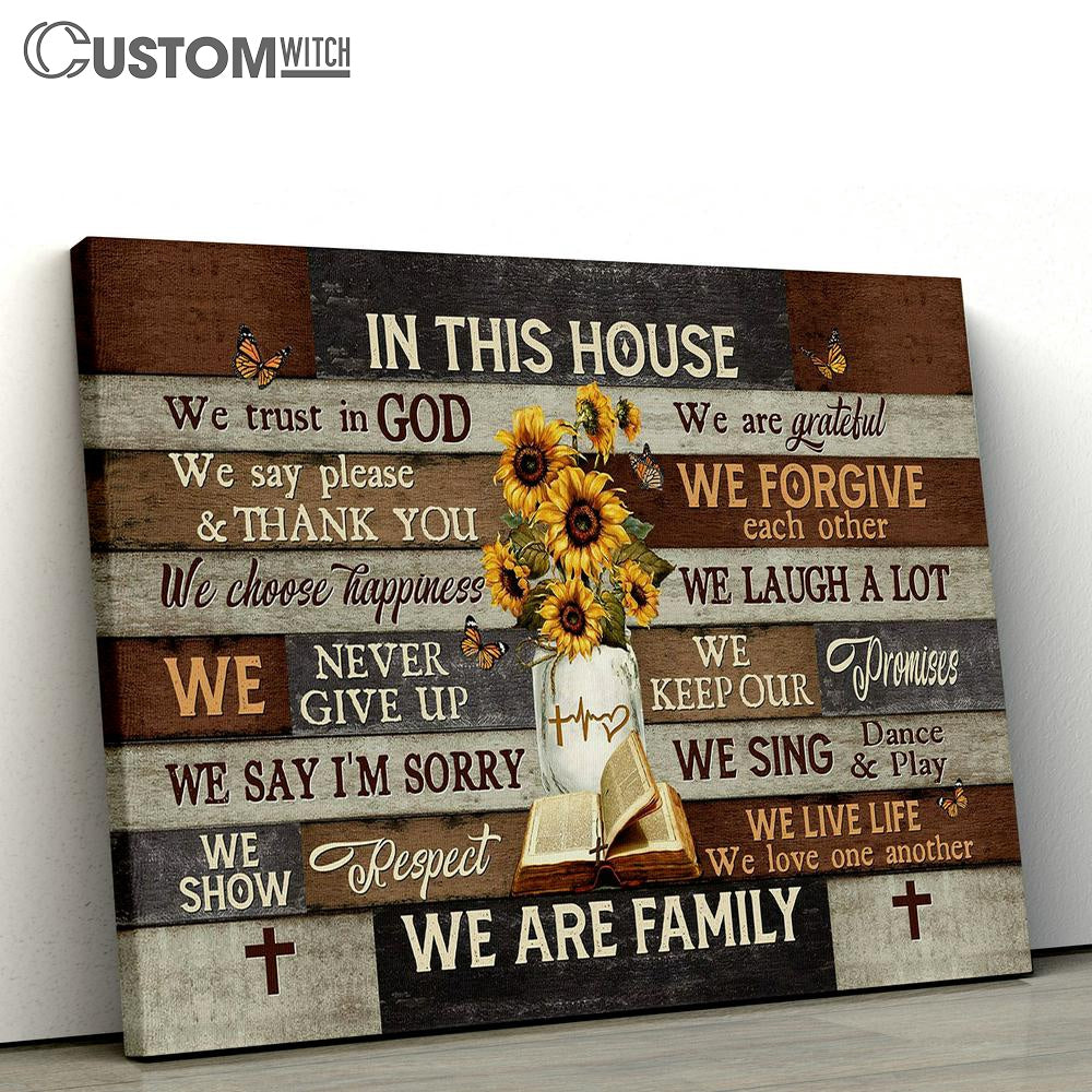 In This House We Trust In God Sunflower Vase Canvas Art - Bible Verse Wall Art - Wall Decor Christian