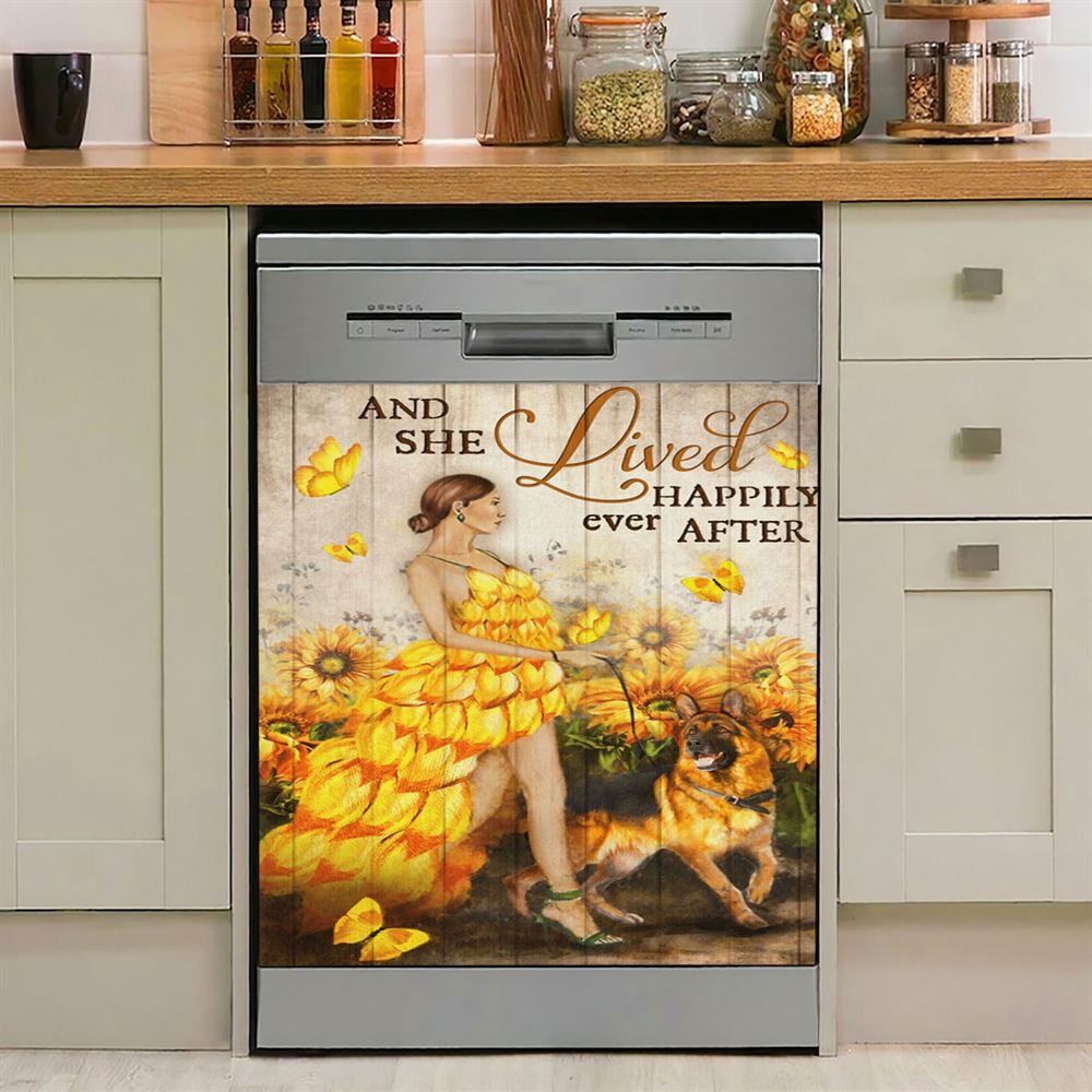 And She Lived Happily Ever After Beautiful Girl German Shepherd Dishwasher Cover, Christian Dishwasher Magnet Cover, Religious Kitchen Decor