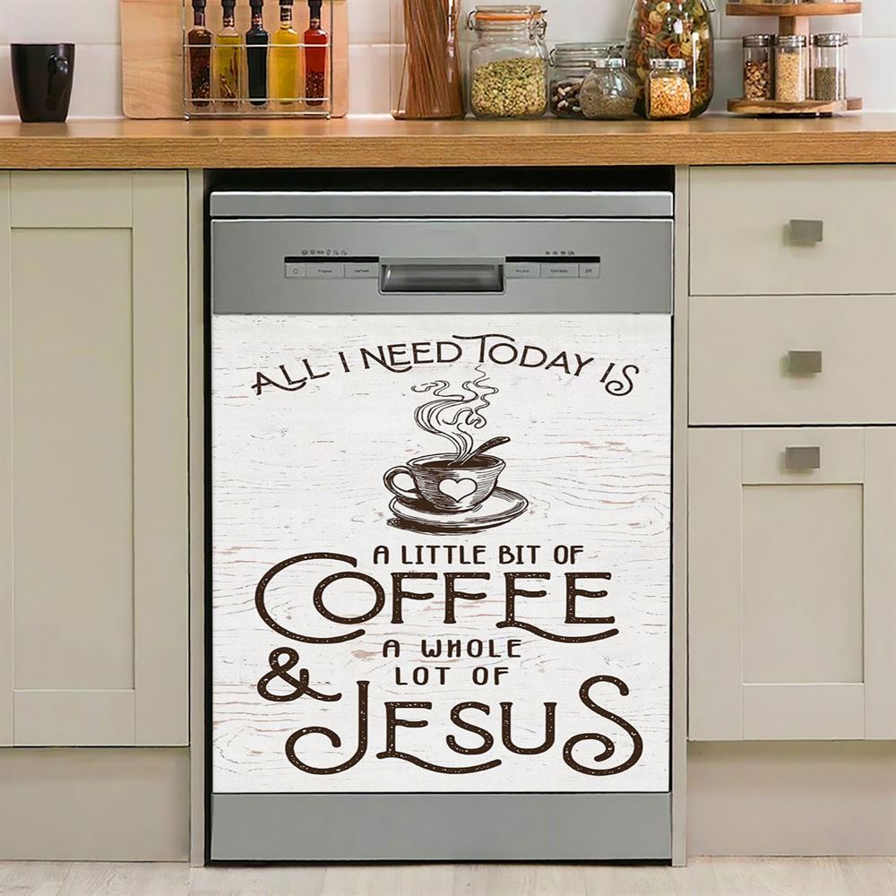 All I Need Today Is A Little Bit Of Coffee And A Whole A Lot Of Jesus Dishwasher Cover, Christian Dishwasher Magnet Cover, Religious Home Decor