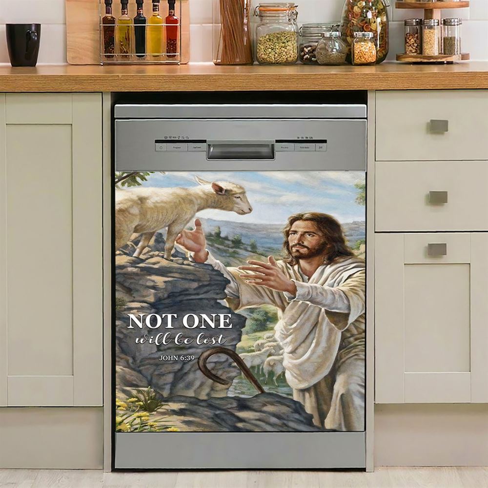 Not One Will Be Lost Jesus & Lamb Dishwasher Cover, Jesus Dishwasher Wrap, Christian Kitchen Decoration