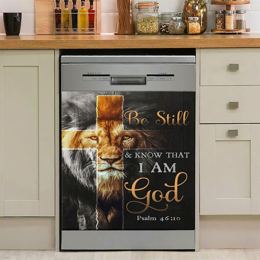 Lion Of Judah Be Still And Know Psalm 4610 Christian Dishwasher Cover, Bible Verse Dishwasher Wrap, Scripture Kitchen Decoration