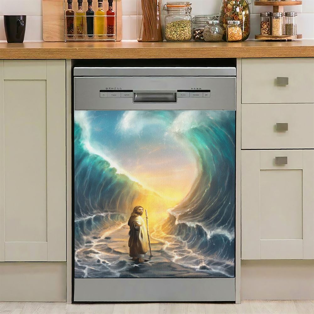 Jesus Walking Through The Sea Dishwasher Cover, Christian Dishwasher Wrap, Jesus Kitchen Decoration