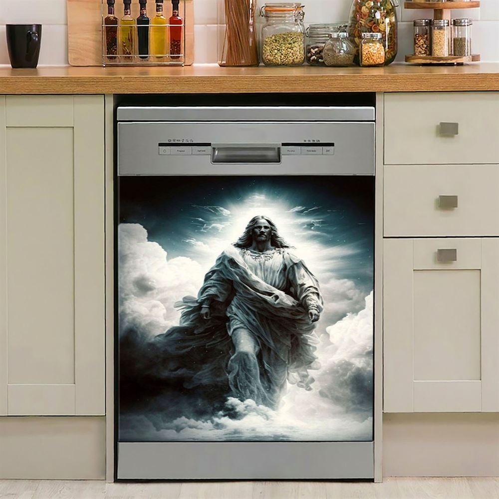 Jesus Walks On Water Cross Light Dishwasher Cover, Jesus Portrait Dishwasher Wrap, Christian Kitchen Decoration