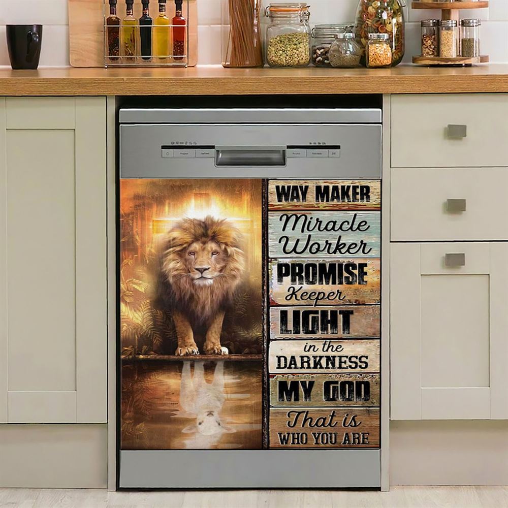 Jesus Way Maker Lion Of Judah Dishwasher Cover, Bible Verse Dishwasher Wrap, Scripture Kitchen Decoration