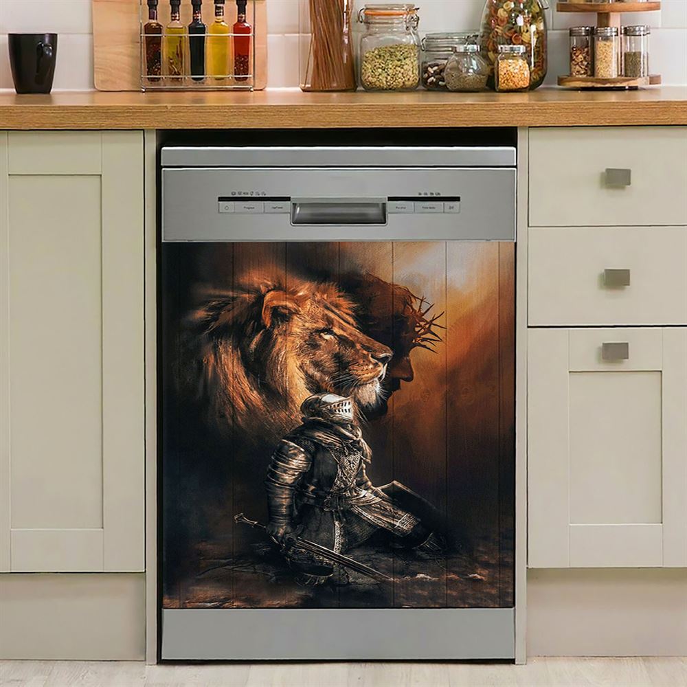 Jesus Christ Prays With Lion Dishwasher Cover, Lion Dishwasher Stickers, Christian Inspirational Kitchen Decor