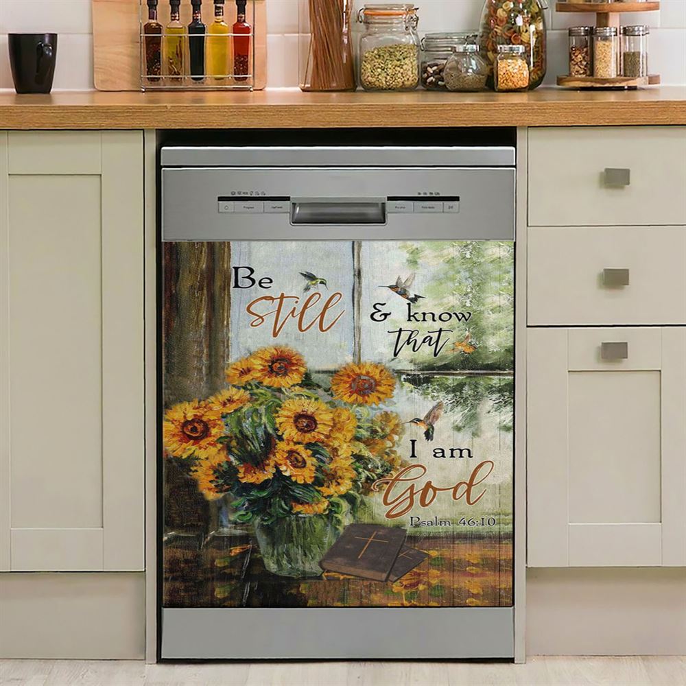 Hummingbird Sunflower Be Still And Know That I Am God Psalm 4610 Dishwasher Cover, Bible Verse Dishwasher Stickers, Scripture Kitchen Decor