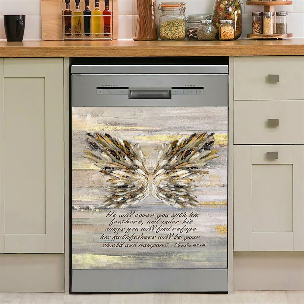 He Will Cover You With This Feathers Abstract Wings Dishwasher Cover, Christian Dishwasher Stickers, Religious Kitchen Decor