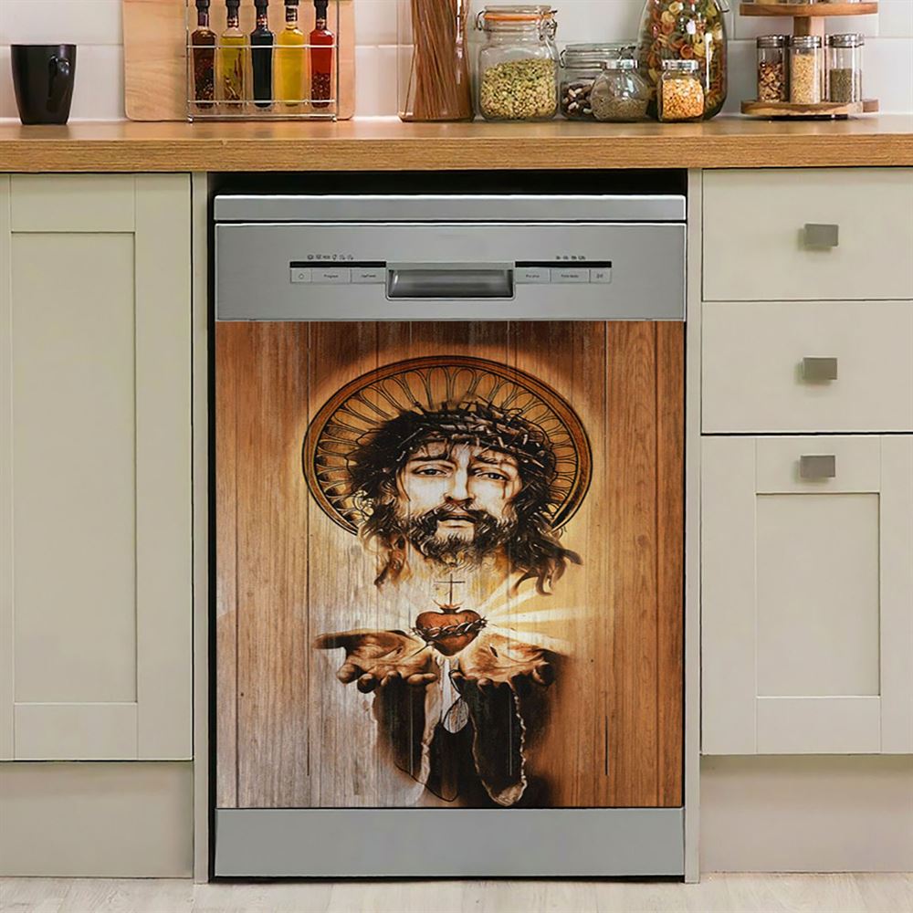 Heart Jesus Face Crown Of Thorn Jesus Dishwasher Cover, Christian Dishwasher Stickers, Bible Verse Kitchen Decor