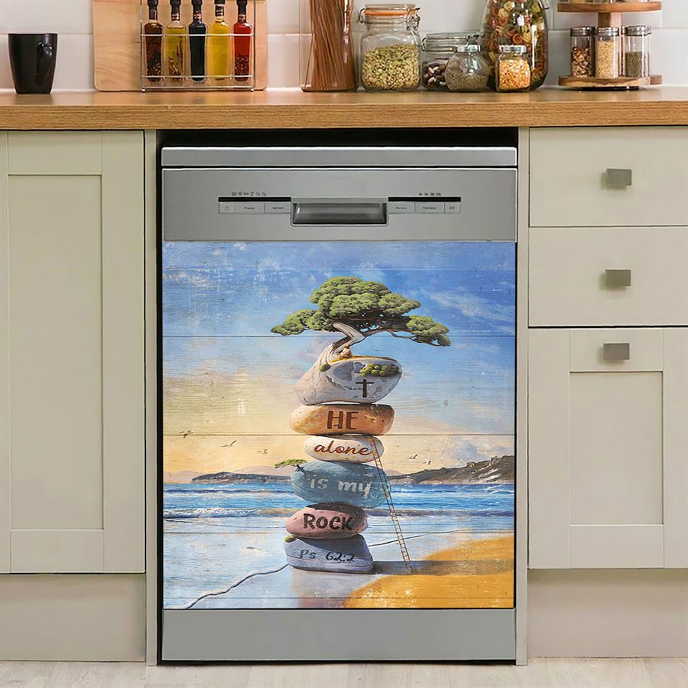 He Alone Is My Rock Rock Cairn Bonsai Dishwasher Cover, Bible Verse Dishwasher Stickers, Christian Inspirational Kitchen Decor