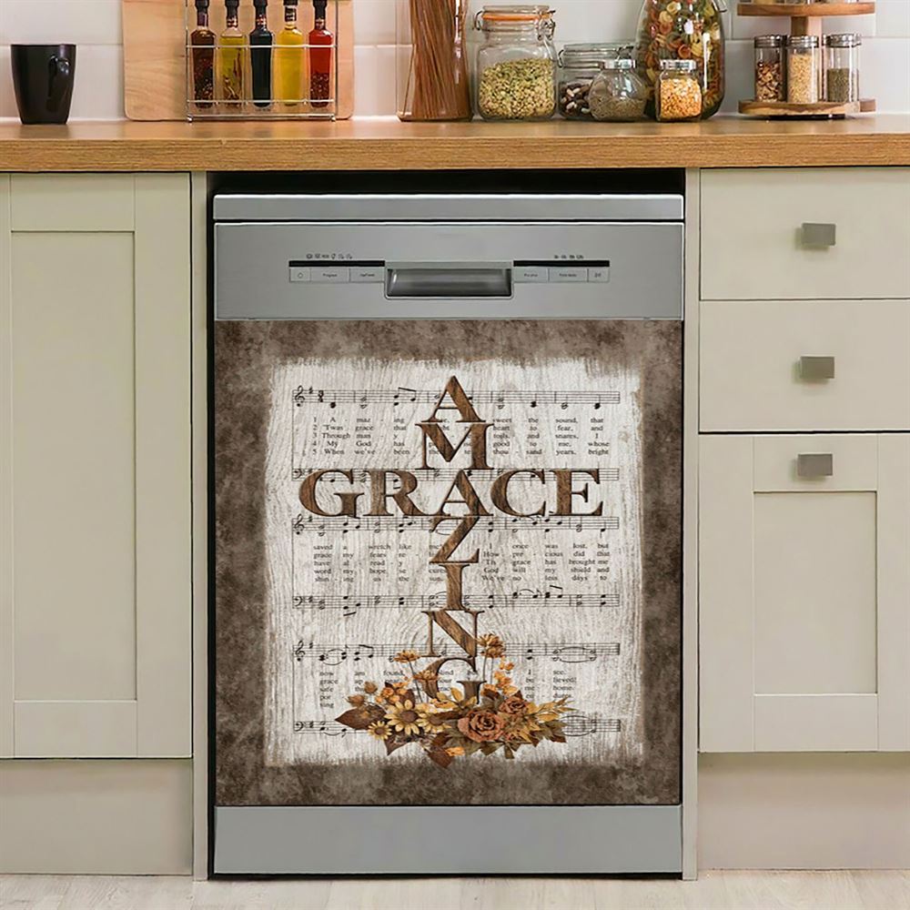 Grace Song Vintage Flower Jesus Cross Dishwasher Cover, Christian Dishwasher Stickers, Bible Verse Kitchen Decor