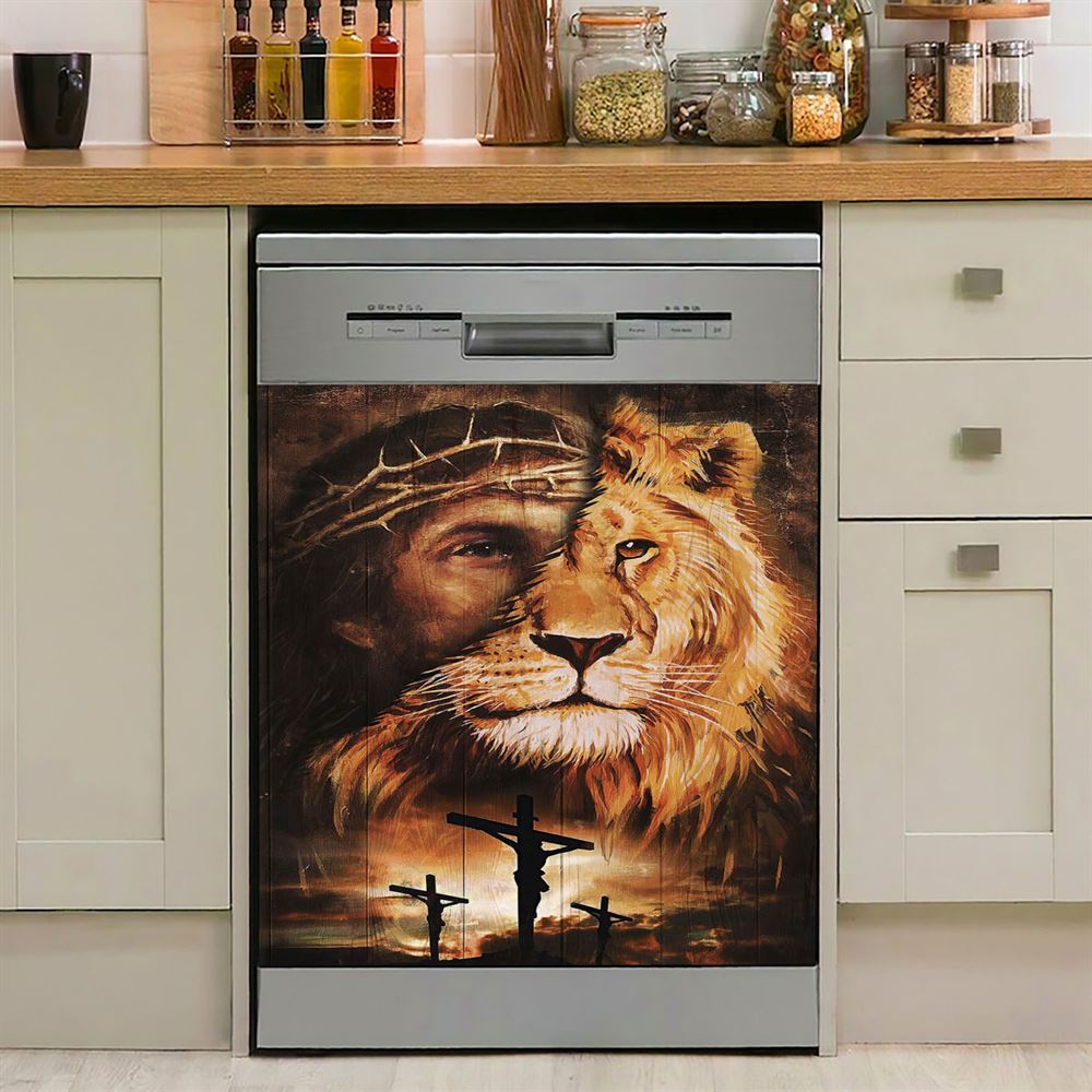 Half Jesus Half Lion Dishwasher Cover, Jesus Dishwasher Stickers, Christian Kitchen Decor