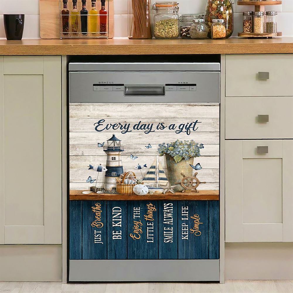 Every Day Is A Gift Lighthouse Butterfly Dishwasher Cover, Christian Dishwasher Magnet Cover, Bible Verse Kitchen Decor