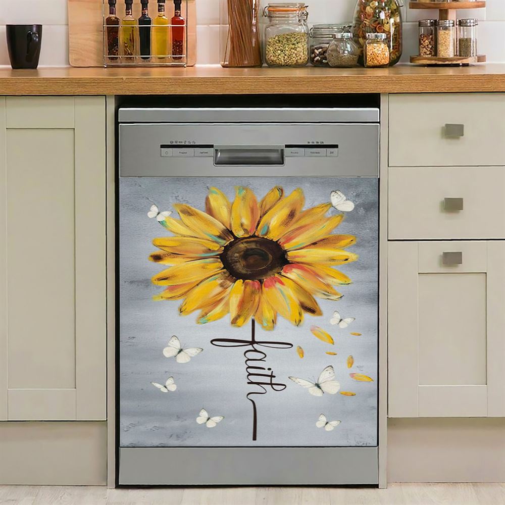 Christian Faith Cross Butterfly Sunflower Dishwasher Cover, Bible Verse Dishwasher Magnet Cover, Scripture Kitchen Decor