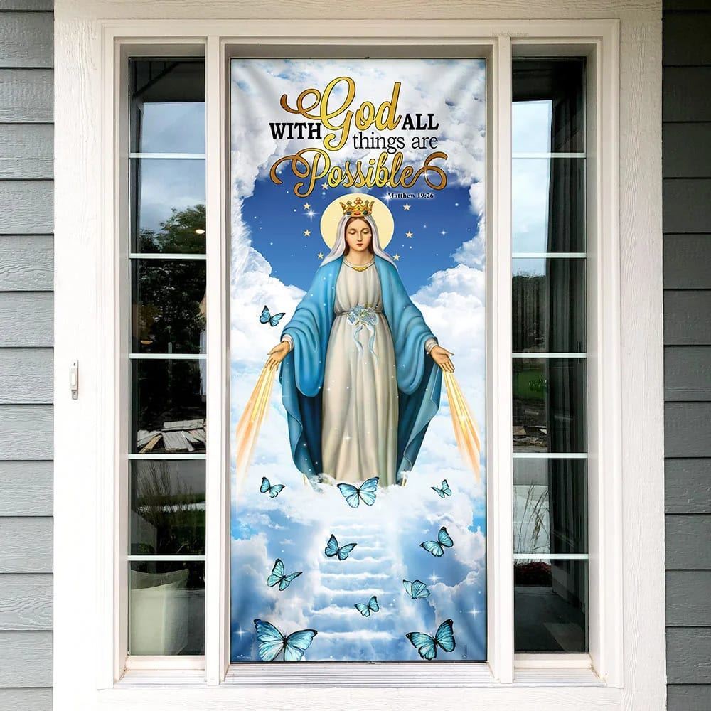 Mother Maria Door Cover With God All Things Are Possible, Christian Door Decor, Door Christian Church, Christian Door Plaques