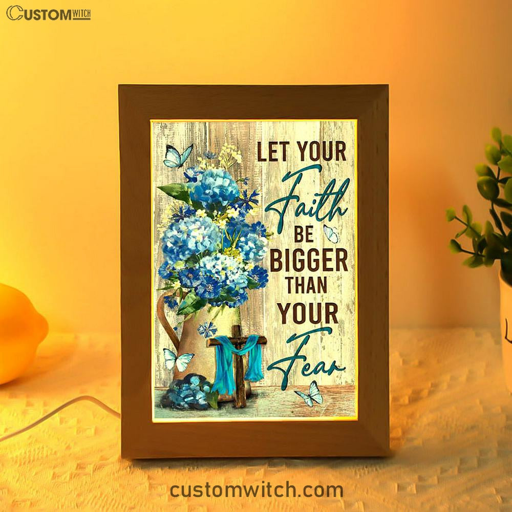 Let Your Faith Be Bigger Than Your Fear Flower Blue Butterfly Frame Lamp - Lion Frame Lamp Print - Christian Art - Religious Home Decor