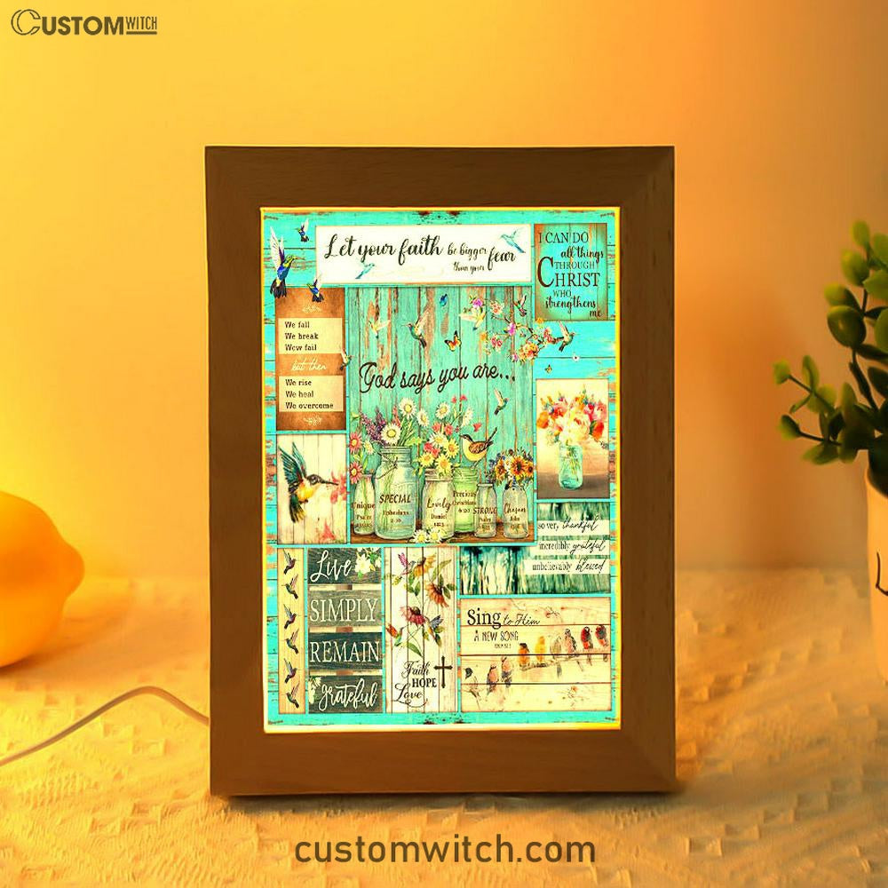 Let Your Faith Be Bigger Than Your Fear Humming Bird Frame Lamp Art - Christian Frame Lamp - Religious Gifts Night Light